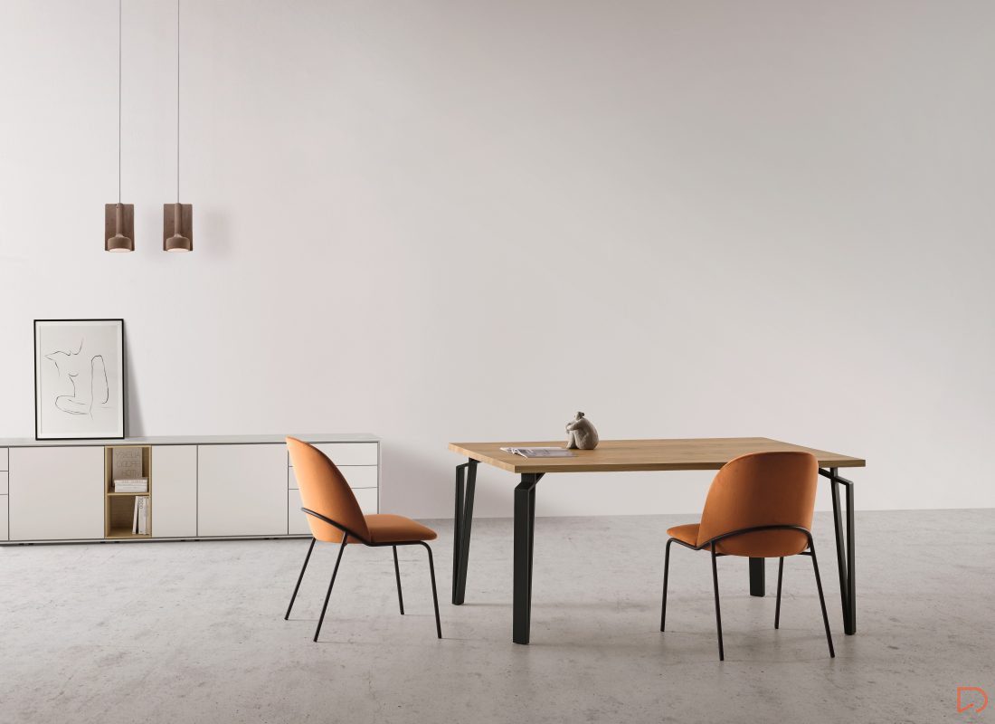 - La mesa Arco destaca por su tapa fina, por sus materiales de primera calidad, el diseño moderno, versátil e industrial de las patas. Adaptándose a cualquier espacio y estilo.