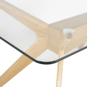 - La mesa DELLA tiene un diseño sencillo, es fija con tapa de cristal templado de 1 cm de espesor y patas de madera de hevea acabada en roble o nogal, una combinación que crea una mesa elegante y original.
