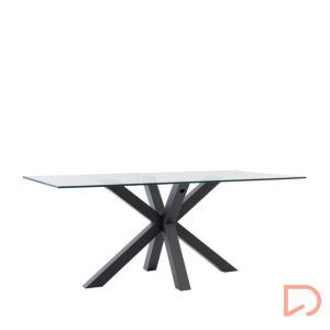 - La mezcla entre el cristal templado y el metal crea una mesa industrial con un toque elegante.