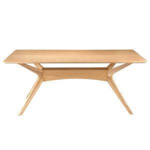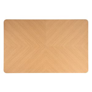 - Esta mesa de madera rectangular, con dimensiones de 140x90cm, destaca por su diseño sofisticado y elegante. Su estructura y patas están fabricadas en resistente madera de hevea, mientras que la tapa fija, de 30 mm de espesor, está acabada en un refinado roble disponible en diferentes tonos, roble o nogal.