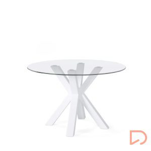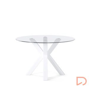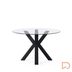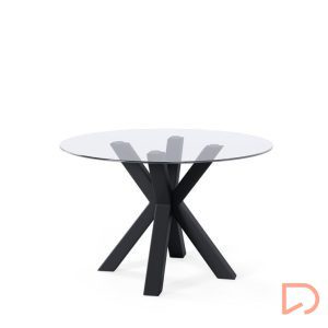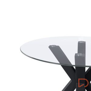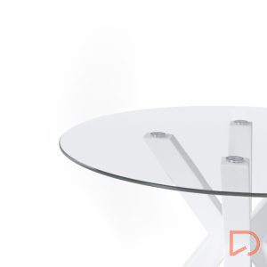 - La mesa JADE tiene un diseño moderno, es fija con tapa de cristal templado de 1 cm de espesor y patas metálicas en tonos negro y blanco, una combinación que crea una mesa elegante y industrial.