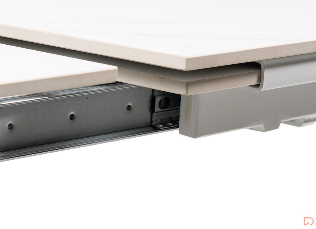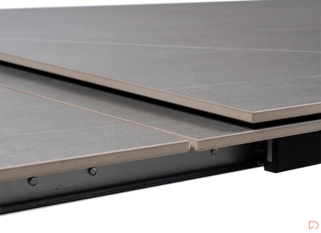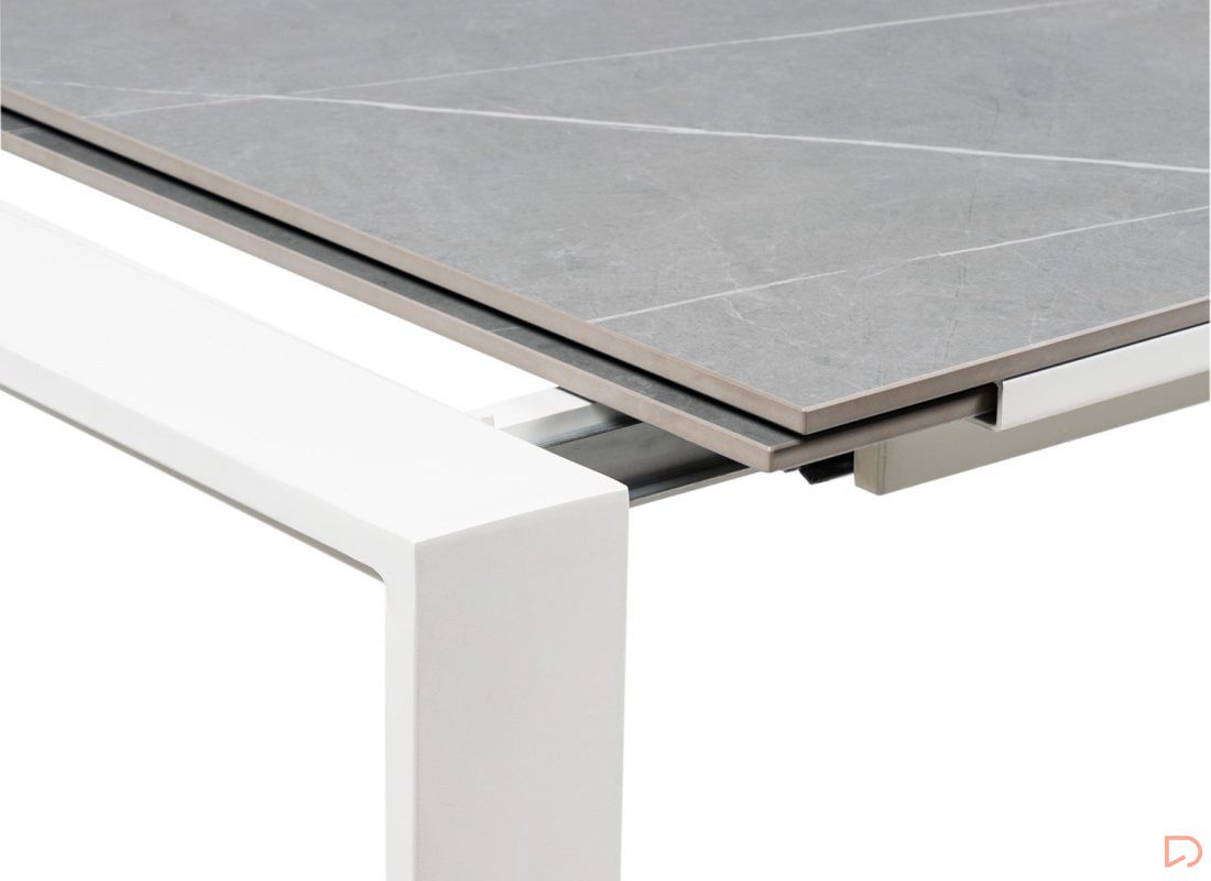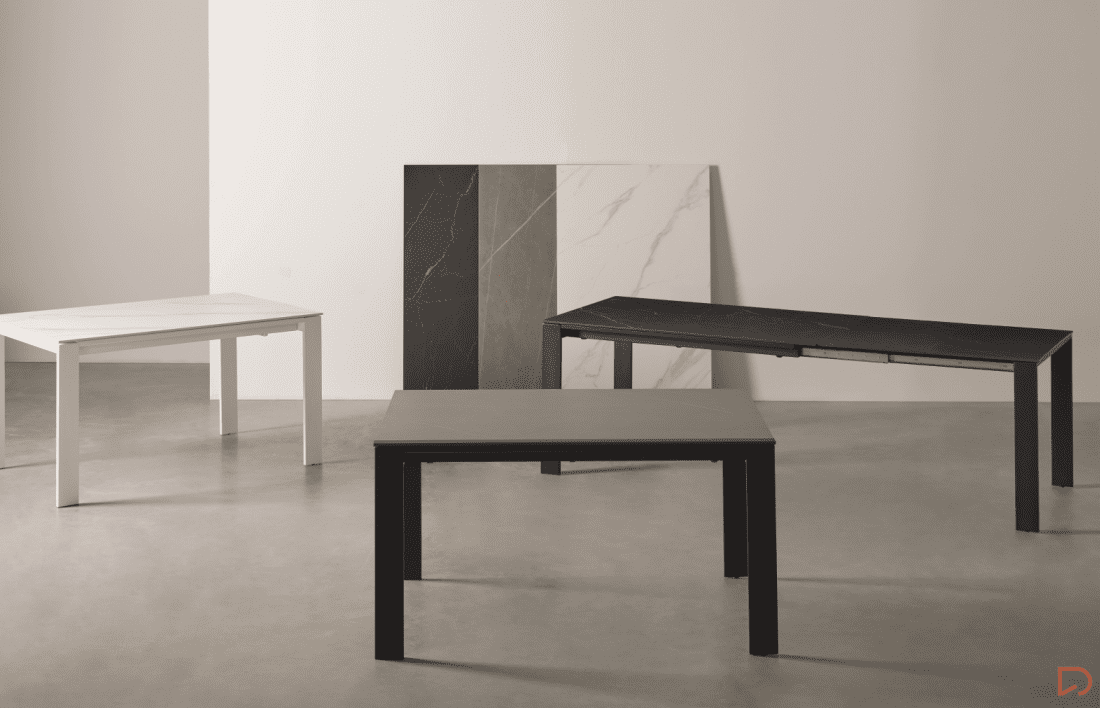 - Mesa extensible con tapa de 10mm de porcelánico macizo.