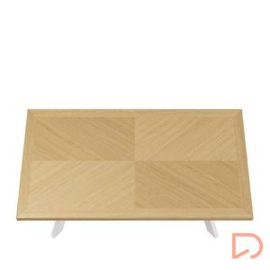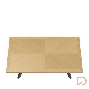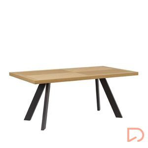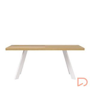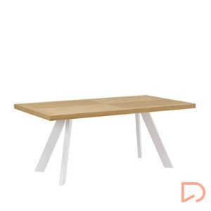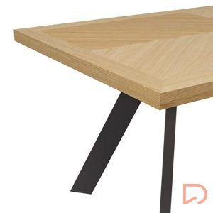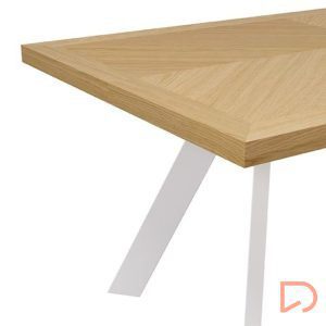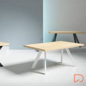 - Con una tapa de chapa de roble de 4 cm de grosor, esta mesa destaca por su robustez y belleza natural. Las patas metálicas en color blanco o negro no solo aportan estabilidad, sino que también complementan el diseño con un toque moderno y minimalista.