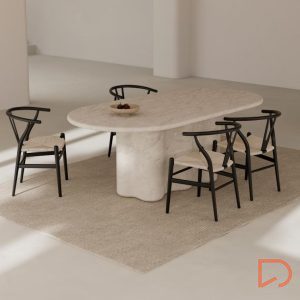 La mesa LORRAINE es una pieza escultórica de diseño contemporáneo, completamente elaborada en microcemento con un sofisticado acabado mármol travertino, que aporta una estética natural, elegante y atemporal. Su presencia imponente se ve reforzada por sus generosas dimensiones —220 cm de ancho y un grosor de 4,2 cm en la tapa—, convirtiéndola en el centro indiscutible de cualquier espacio.