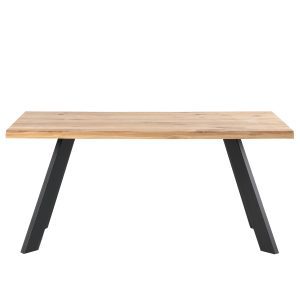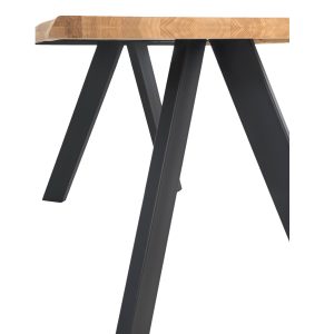 - La mesa LUCINA destaca por ser fija con tapa de madera de roble maciza de 40 mm de espesor y patas de metal en color negro o blanco.