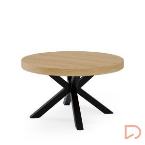 La mesa MILDRED es una oda al diseño funcional con alma contemporánea. Su tapa redonda, elaborada en chapa de roble natural, transmite una calidez sutil gracias a sus vetas visibles y acabado suave, mientras que la base metálica en color negro, con forma de aspa entrecruzada, aporta solidez visual y una marcada estética industrial.