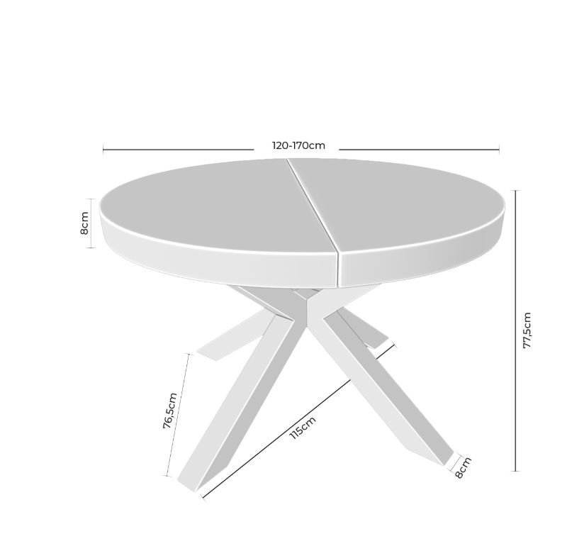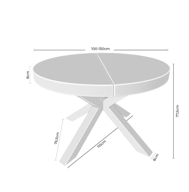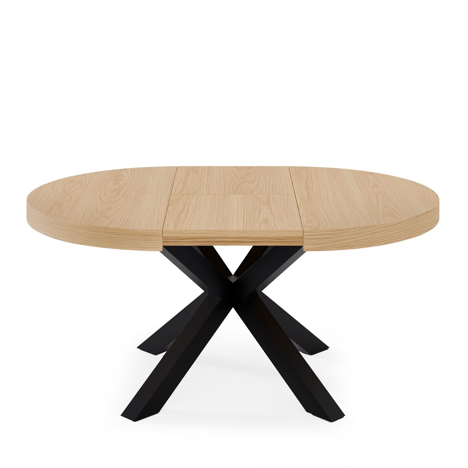 Disponible en dos tamaños —ø100 y ø120 cm—, esta mesa cuenta con un mecanismo extensible que añade 50 cm adicionales, permitiendo pasar de un formato compacto a uno más amplio con facilidad. Esta cualidad la convierte en una aliada perfecta para hogares versátiles, donde el espacio se adapta a las necesidades del momento.
