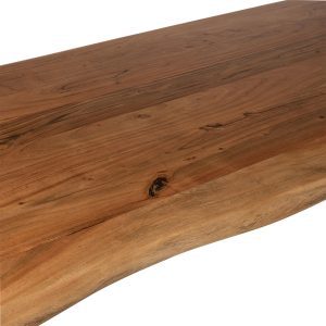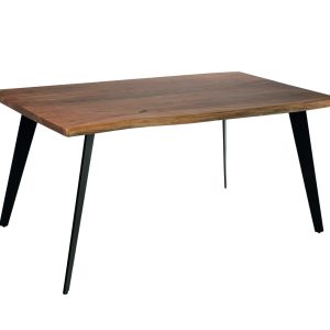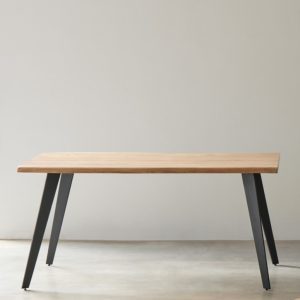 - La mesa MITUL destaca por ser fija con tapa de madera de roble maciza y patas de metal en color negro.