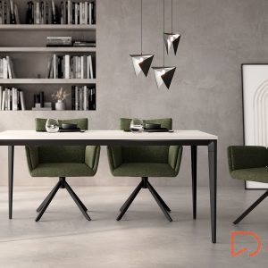 - Mesa en acabados imitación a madera, disponible en tonos: alpin, java, perla, artic, roble o soul blanco, patas de metal en acabados negro o marfil creando una estructura artística y estable.