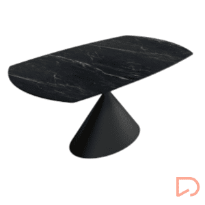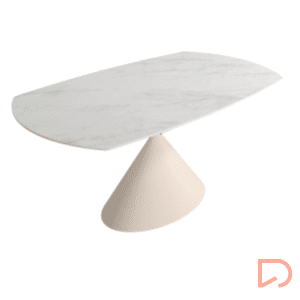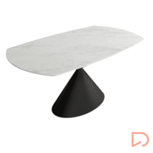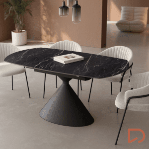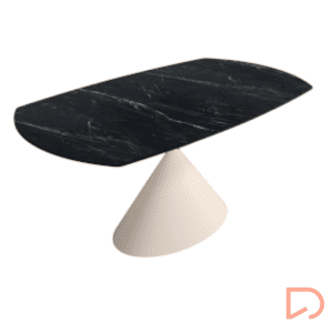 - Mesa en acabados porcelánicos, disponible en tonos: arena, porland, marquina y carrara, pata conica de metal en acabados negro o marfil creando una estructura artística y estable.