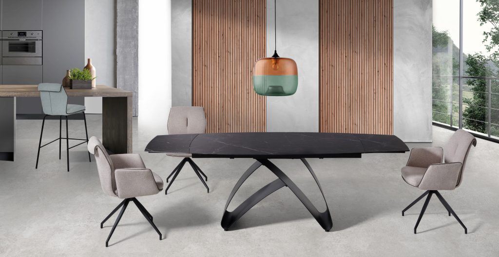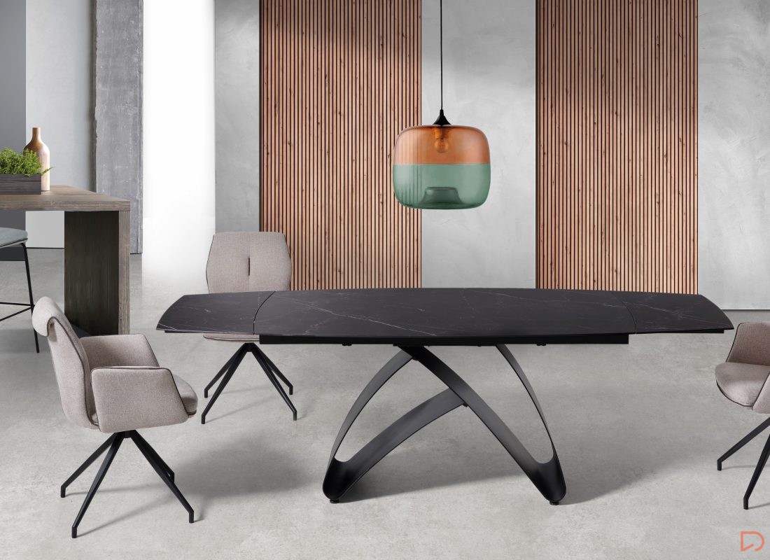 - La mesa RITA se caracteriza por su elegante y llamativo pie de lazo, es la pieza principal de esta mesa.