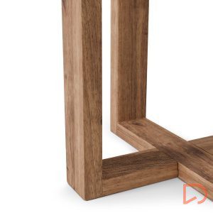 Las patas, fabricadas en madera de hevea y dispuestas en forma de “V” invertida, no solo garantizan estabilidad, sino que también actúan como elemento decorativo gracias a su diseño estructural limpio y contemporáneo.