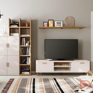 - El mueble TV tiene la capacidad de adaptarse a las exigencias de cada hogar, pudiendo hacer composiciones personalizadas adaptándose a las medidas disponibles de cada espacio.