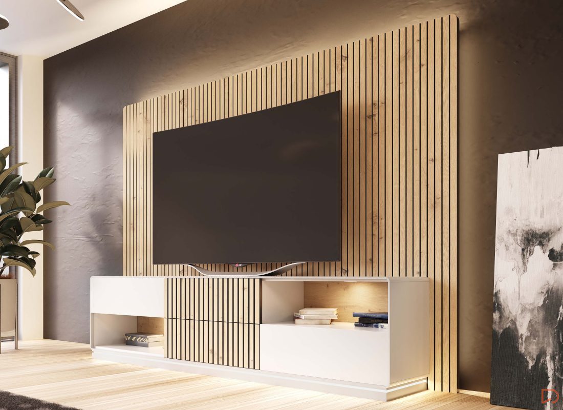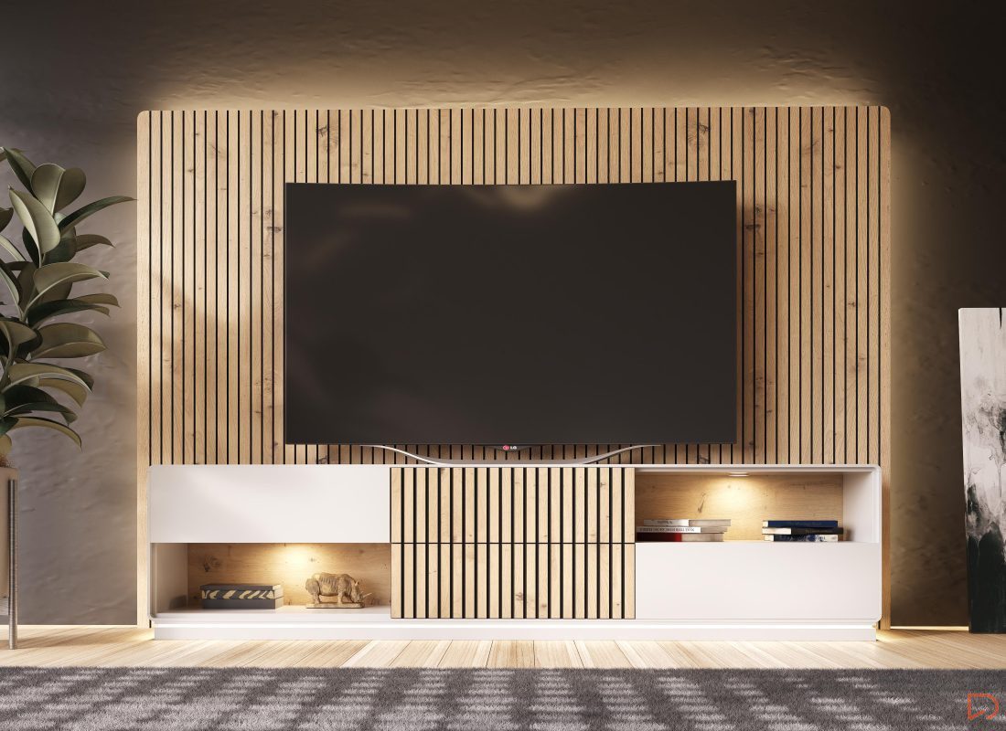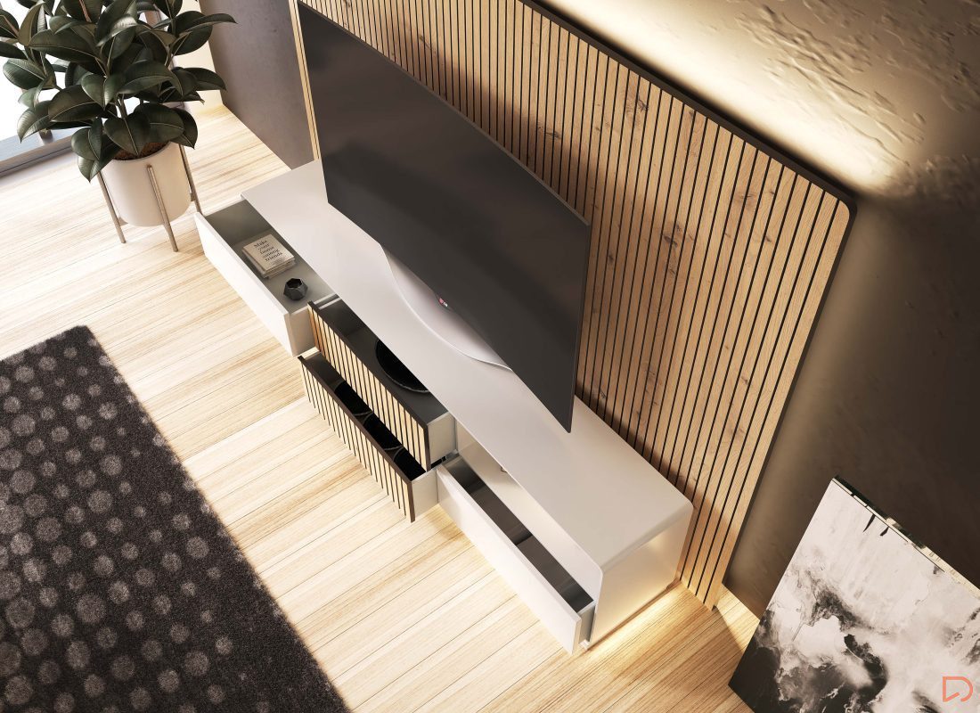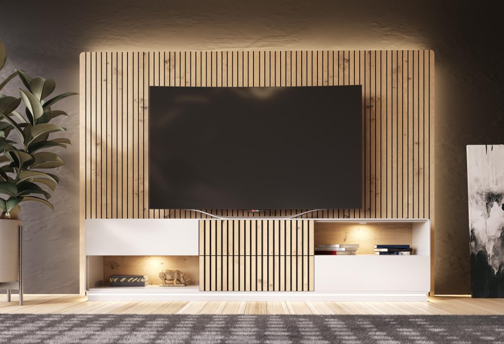 - Dispone de mueble TV de 240 cm de largo, opcional panel trasero.