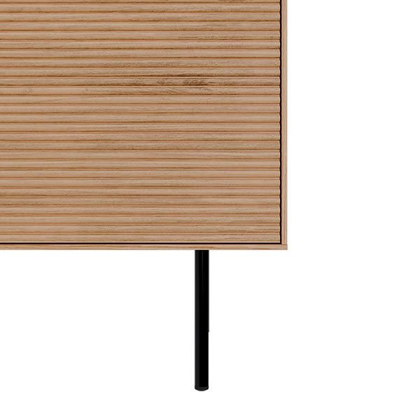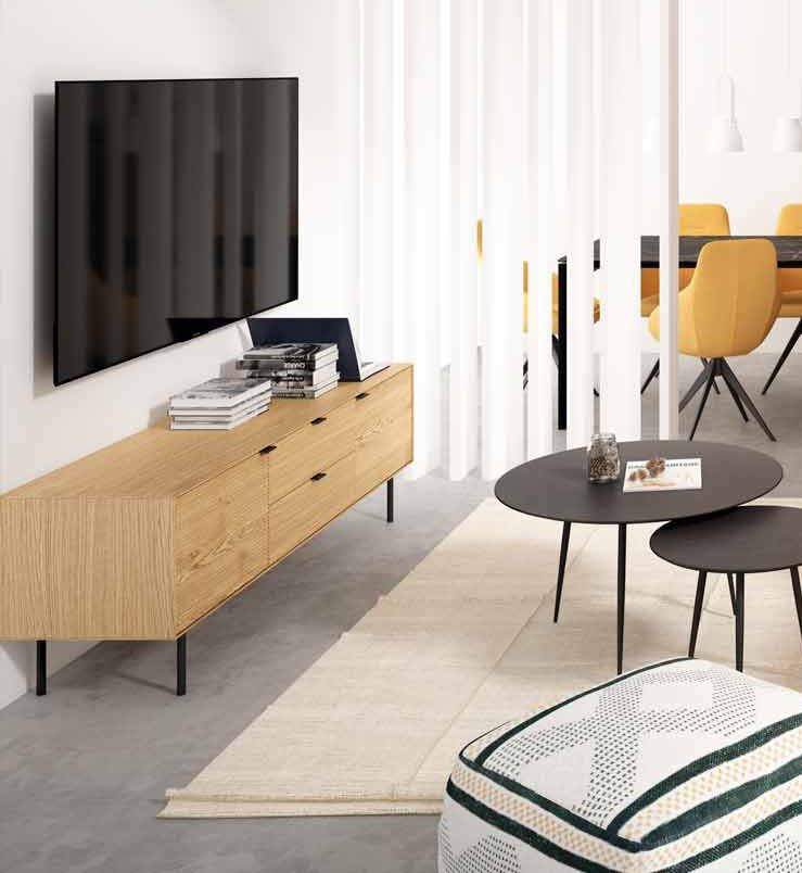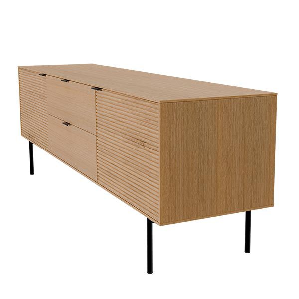 Las patas metálicas negras y los tiradores a juego completan el diseño con un aire contemporáneo. Ideal para salones de estilo moderno, escandinavo o natural, este mueble destaca por su equilibrio entre funcionalidad y estética depurada.