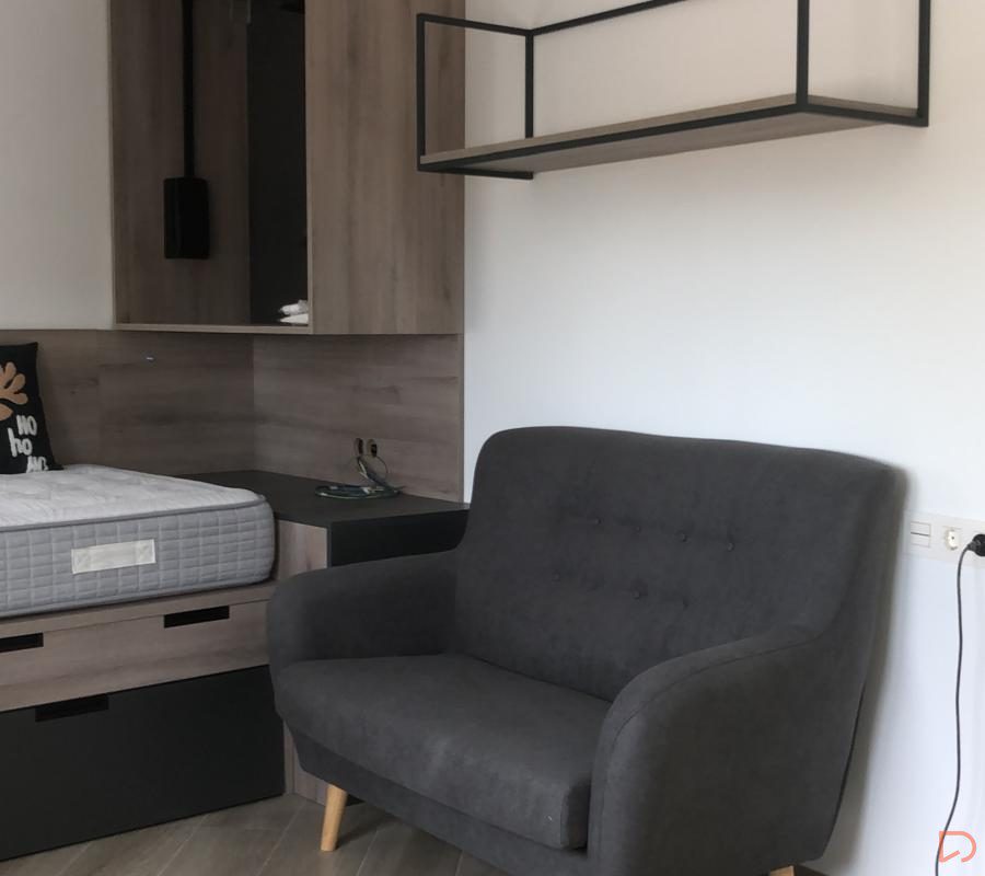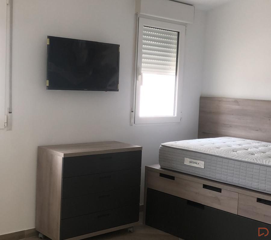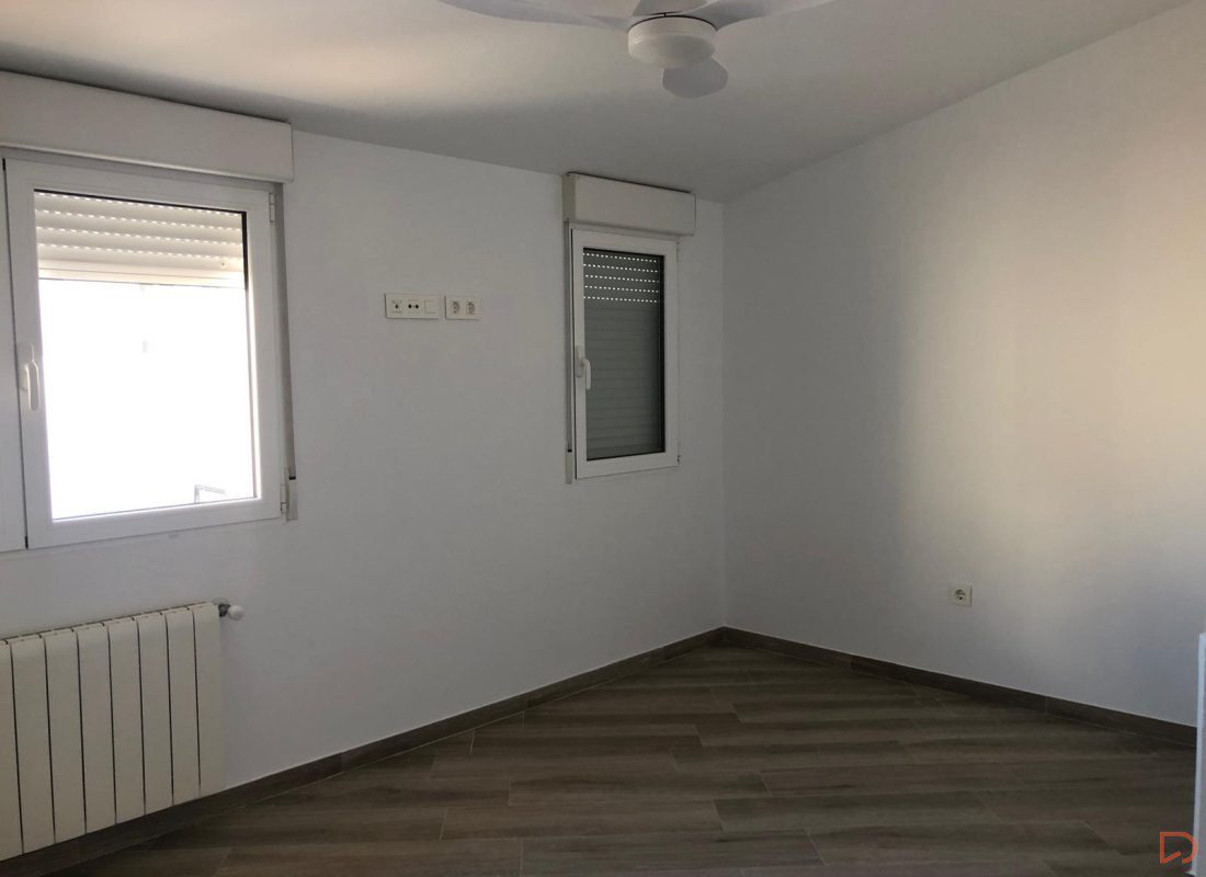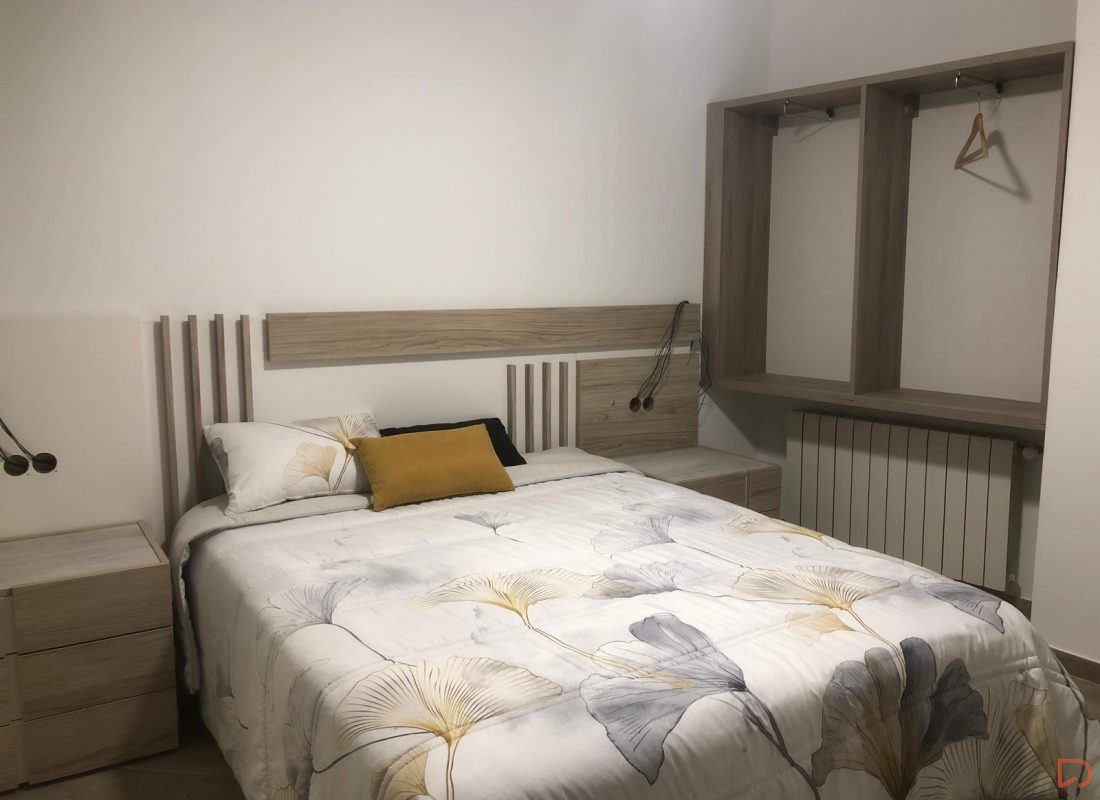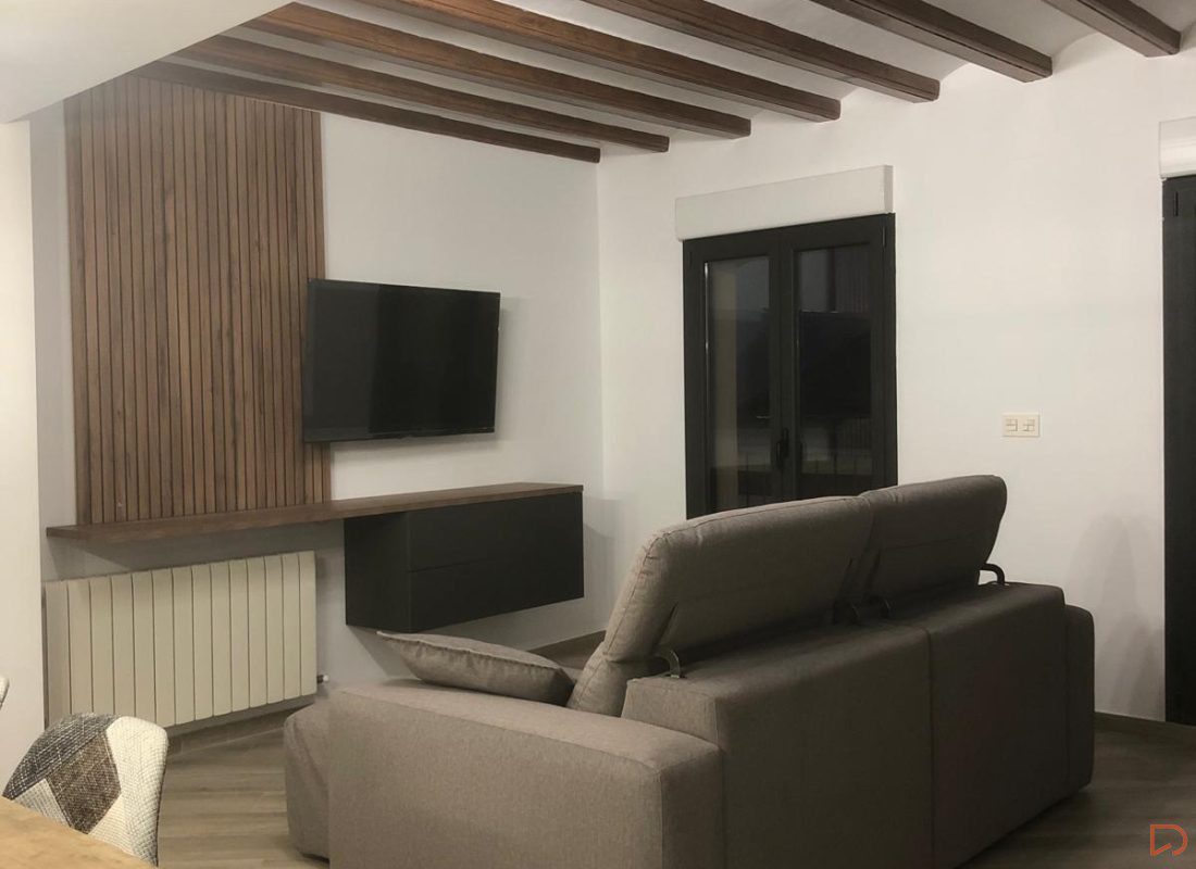 La otra parte de esta reforma se encuentra en el segundo piso, donde tenemos la habitación principal de matrimonio y la de invitados. La habitación de matrimonio se encuentra subiendo por las escaleras con un panel abuardillado en palillería, seguidamente encontramos la cama, con un conjunto de cabezal, mesitas y un armario auxiliar para las prendas de uso diario. En la habitación secundaria hemos diseñado una cama compacta, a conjunto de la cómoda y el armario que se encuentra en la parte superior de la cama que junto con la butaca, ha creado un espacio industrial-nórdico muy acogedor.