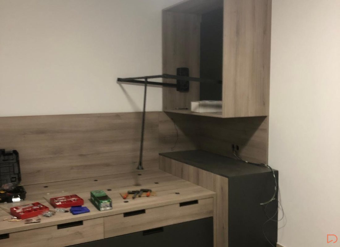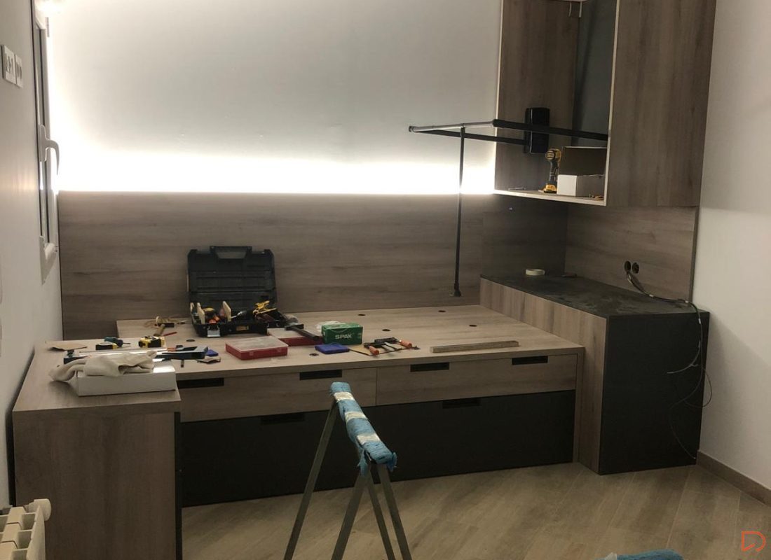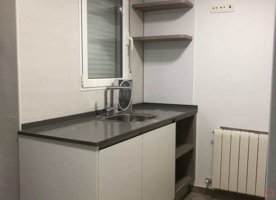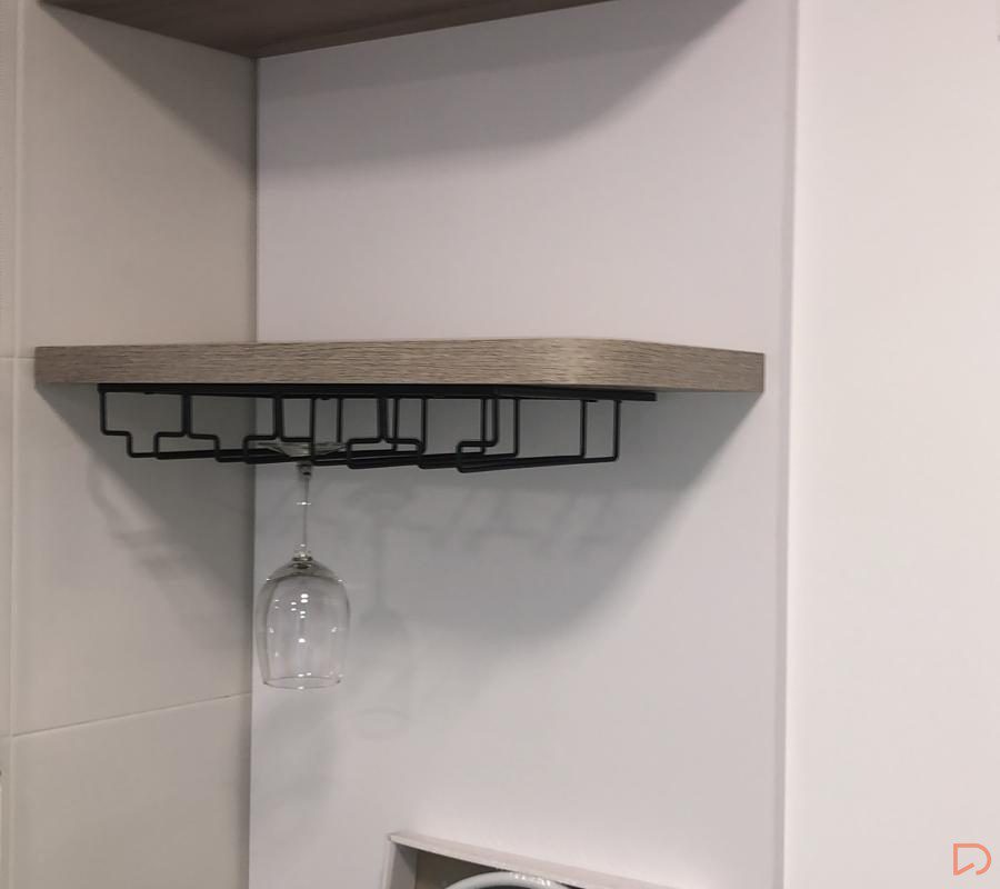 En la zona de la cocina disponíamos de poco espacio, la principal necesidad era armariada para poder almacenar, y gracias a nuestro programa de diseño de muebles a medida hemos logrado cumplir con las necesidades de nuestros clientes y dejar un espacio versátil, funcional y estético, en tonos claros y neutros, fusionando el blanco con el tono roble apagado.
