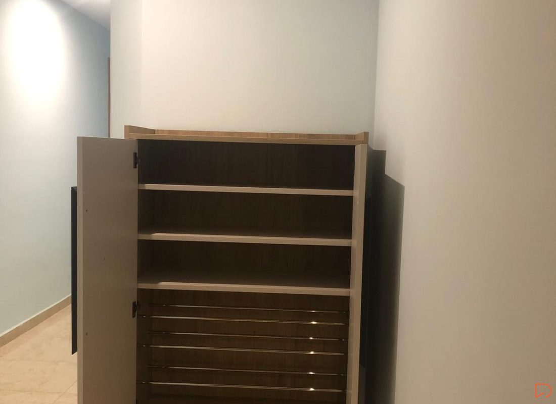 Requerían un recibidor para la entrada de su piso, a medida y con una distribución establecida. Con nuestro programa, les ofrecemos la posibilidad de diseñar un armario con puertas batientes, reduciendo así el ruido y la carga visual y ganando en cuanto a estética.