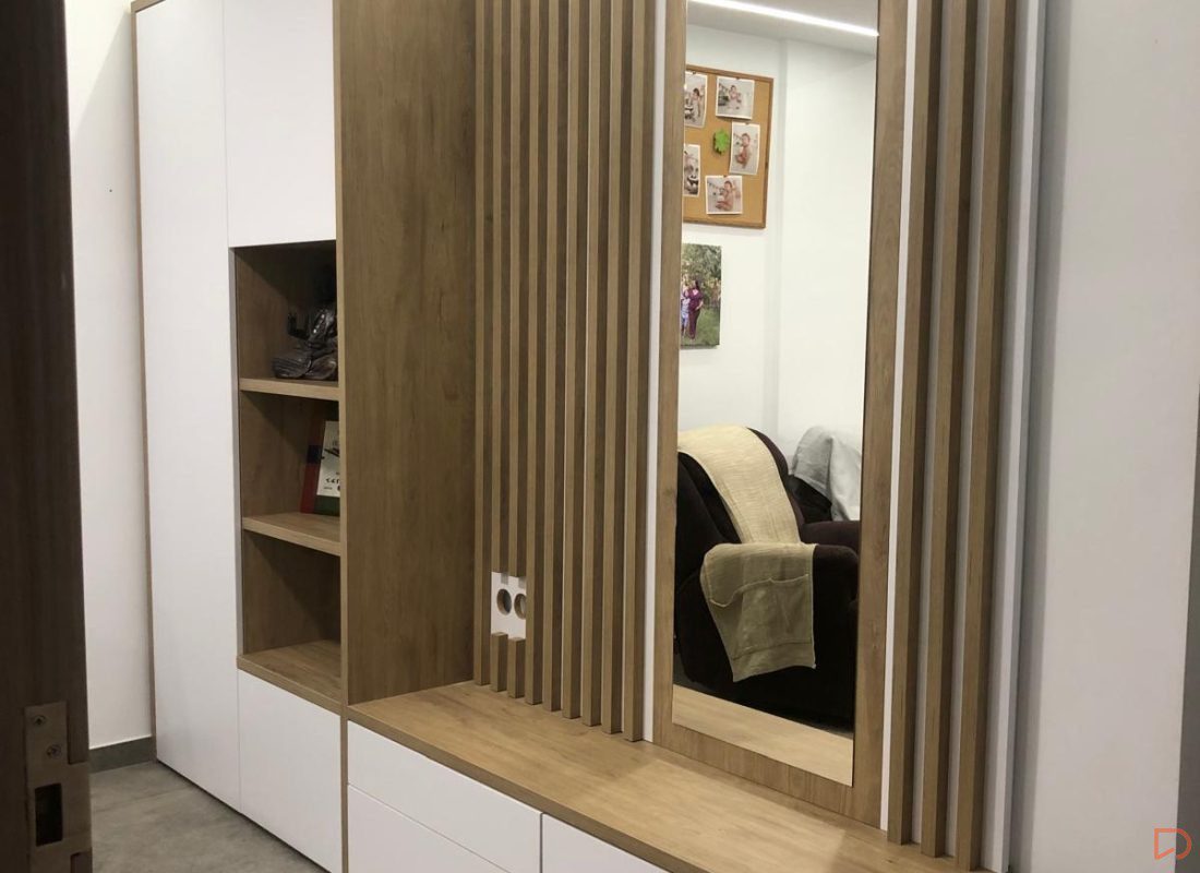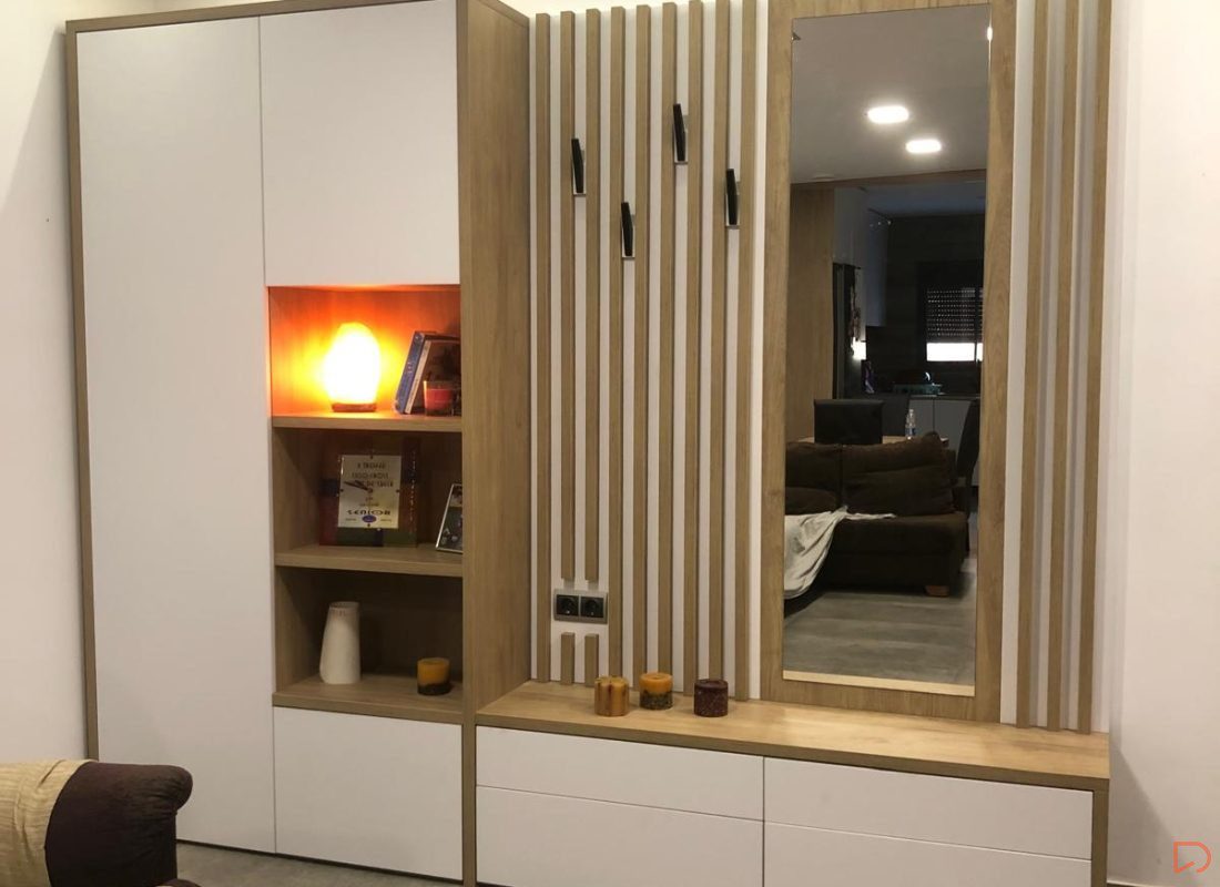 Requerían un recibidor para la entrada de su piso, a medida y con una distribución establecida. Con nuestro programa, les ofrecemos la posibilidad de diseñar un armario con puertas batientes, reduciendo así el ruido y la carga visual y ganando en cuanto a estética.
