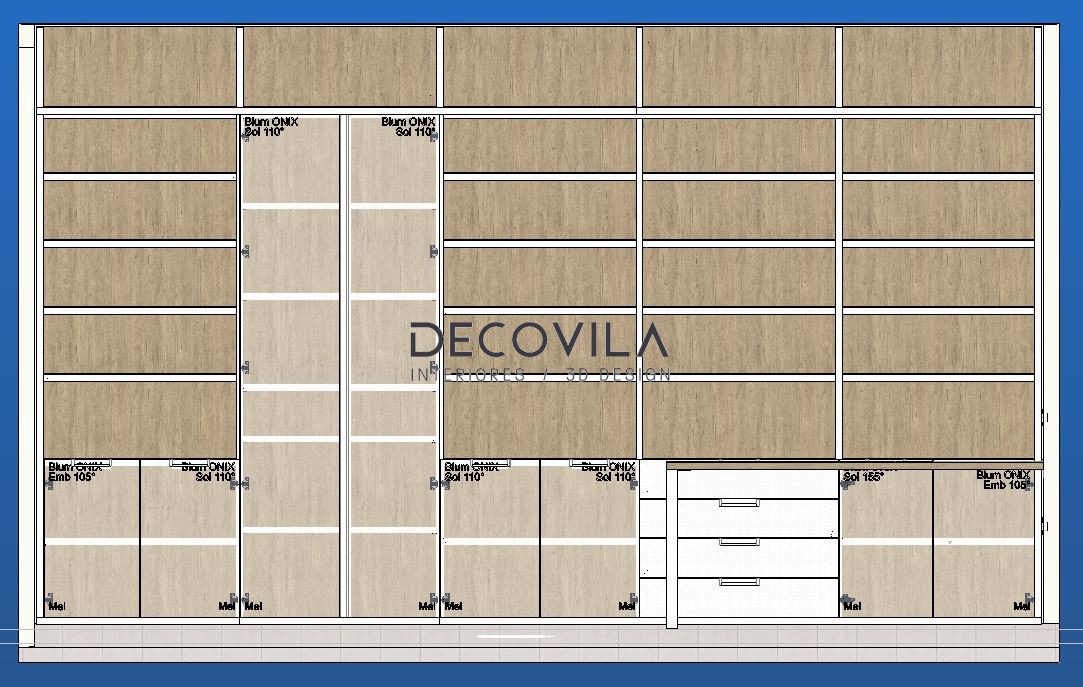 La parte inferior de la estantería está dispuesta con cajones y puertas para facilitar el mantenimiento, evitando la acumulación de polvo en la parte baja.
