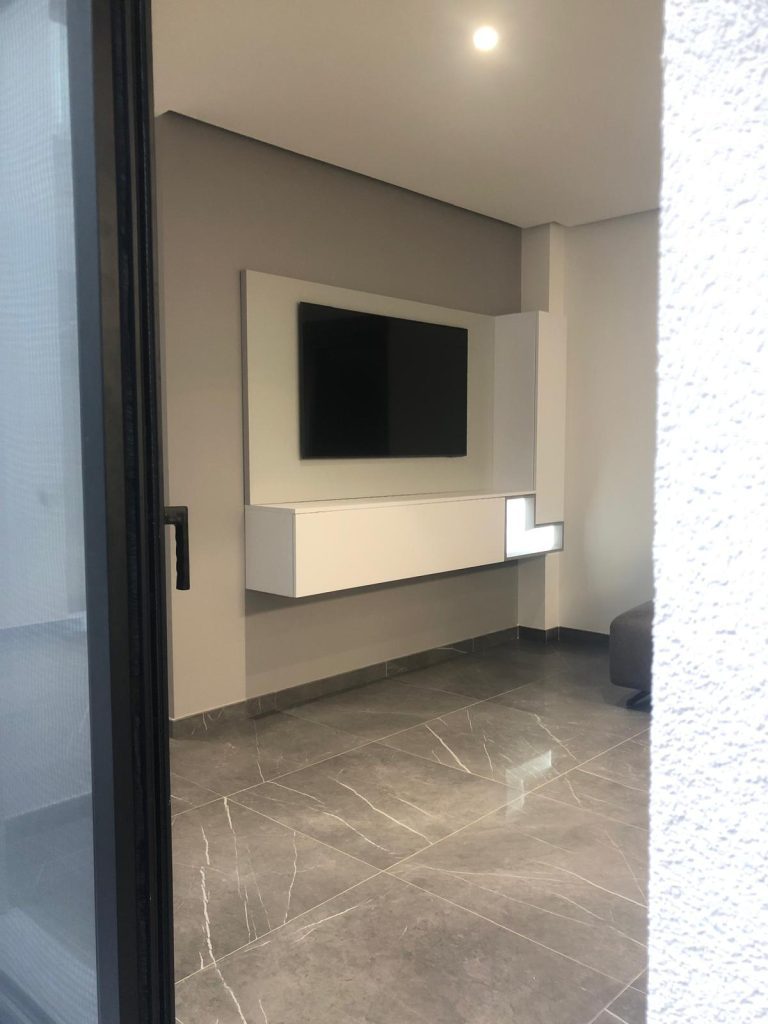 Gracias a nuestro equipo, pudimos diseñarle un mueble según la distribución que el necesitaba, añadiendo las sillas, mesa, recibidor y el sofá.