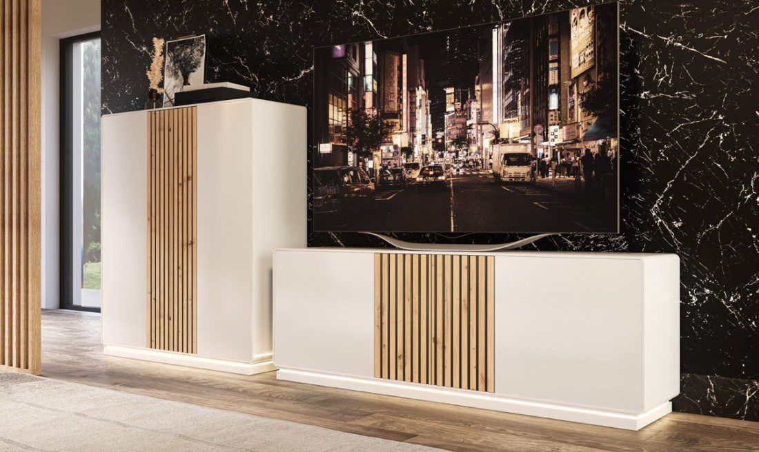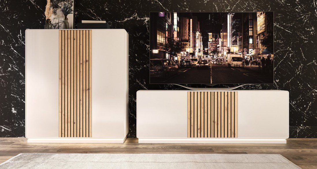 - Original mueble salón moderno blanco Natura con elegantes detalles en color madera natural amazonas.