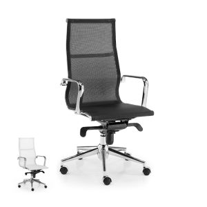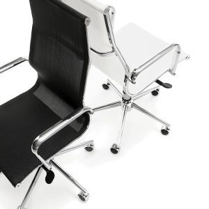 - Las sillas Berlín se diferencian por su elegante acabado en metal cromo, la extraordinaria calidad en la malla acrílica transpirable y su respaldo con curvatura lumbar.