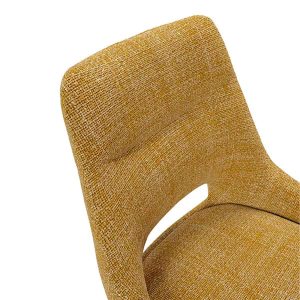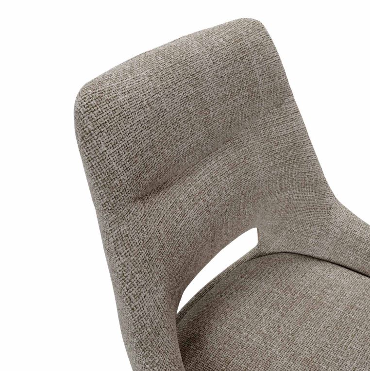 - La silla CALLIE destaca por su diseño original, con un respaldo ancho y un elegante detalle de apertura que le confiere un aspecto sofisticado.