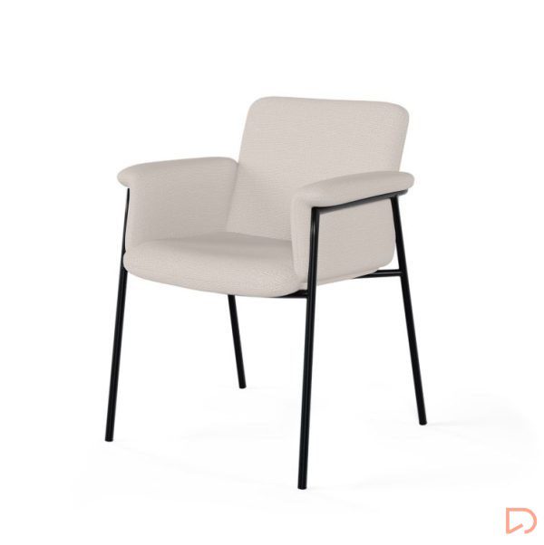 - La combinación del tapizado con las patas metálicas negras le confiere un toque de elegancia, haciéndola perfecta para cualquier estancia.