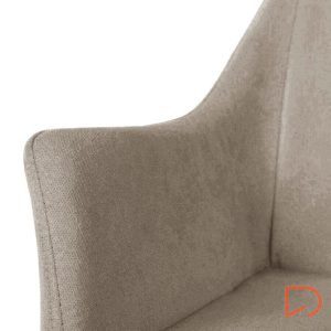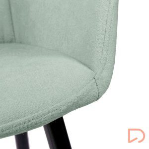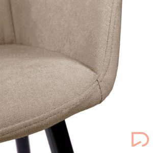 - Tanto el asiento como el respaldo están acolchados y tapizados en un tejido beige, gris claro, gris oscuro, menta, taupe o mostaza, ofreciendo una combinación perfecta de confort y estilo.