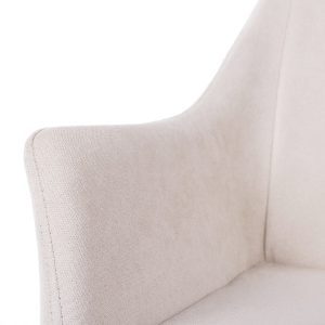 - Las patas, delgadas y anguladas, están acabadas en color negro, proporcionando un contraste llamativo con la tapicería clara y asegurando una estabilidad óptima.