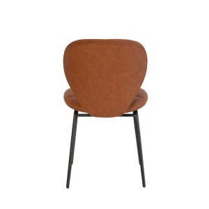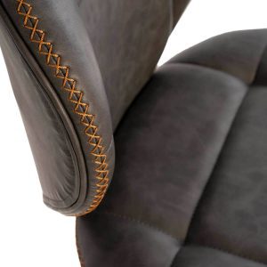- La silla DAFNE destaca por su estilo industrial vintage con asiento en polipiel y patas de metal, en acabados con tonalidades grises y marrones.