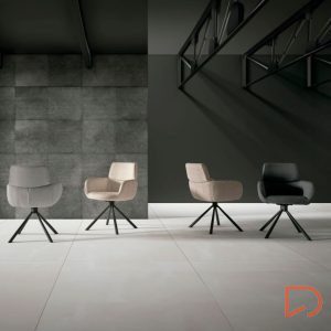 - La silla DIANE también es giratoria a 180º y cuenta con un sistema de retorno. Sus patas metálicas en color negro proporcionan una mayor estabilidad.