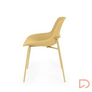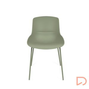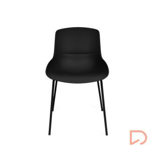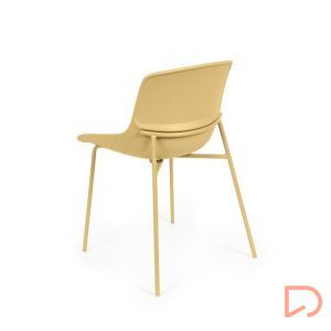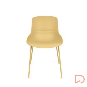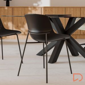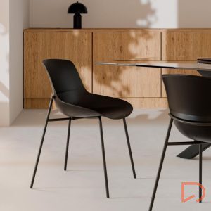 - Su asiento de polipropileno, suavemente curvado, abraza el cuerpo con naturalidad mientras que sus patas metálicas, esbeltas y firmes, aportan un aire moderno y funcional.