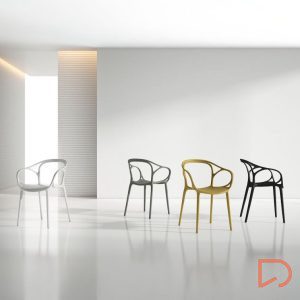- Silla de polipropileno, apilable y con diseño minimalista y elegante.