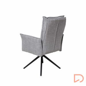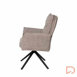 - Su estructura está compuesta por patas metálicas en un elegante acabado negro, que armonizan a la perfección con el tapizado del respaldo, los reposabrazos y el asiento. Estos elementos han sido cuidadosamente acolchados, y su asiento está equipado con un sistema de muelles ensacados, lo que asegura un nivel superior de confort y soporte.