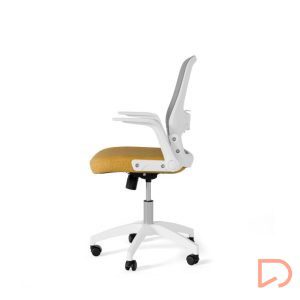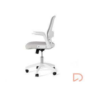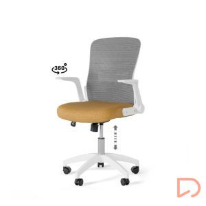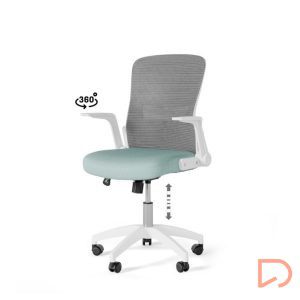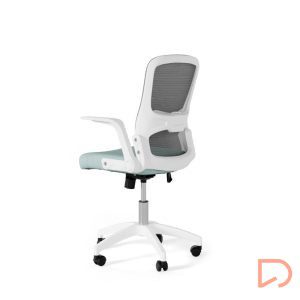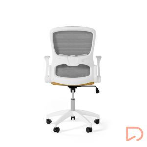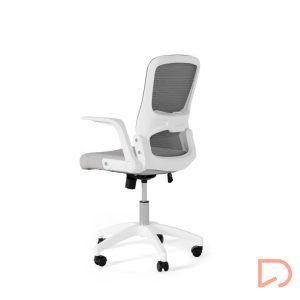 - Con líneas depuradas y detalles ergonómicos, destaca por su asiento tapizado y una estructura metálica en tonos blanco y gris, que le confieren un toque elegante y moderno. Su respaldo de malla transpirable garantiza frescura incluso en jornadas laborales prolongadas, evitando la acumulación de calor.
