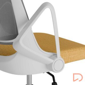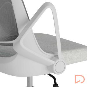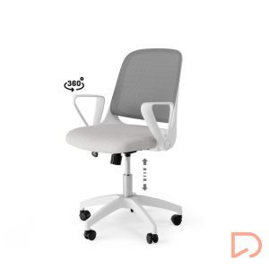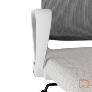 - Con un diseño limpio y características ajustables, se adapta a las necesidades de usuarios exigentes que buscan ergonomía y estética en un solo producto. El asiento tapizado se integra perfectamente con su estructura metálica en tonos blanco y gris, ofreciendo un aspecto moderno y sofisticado.