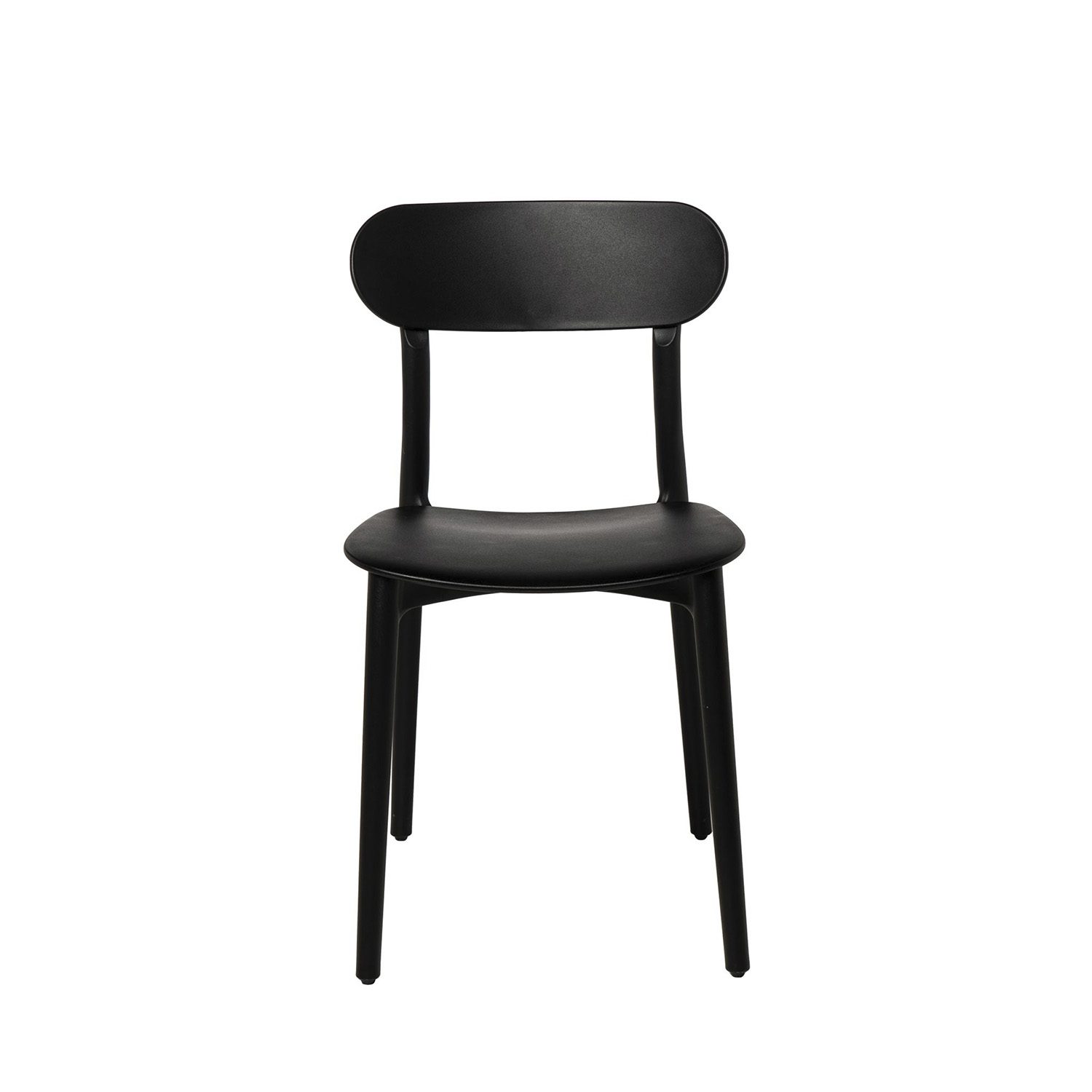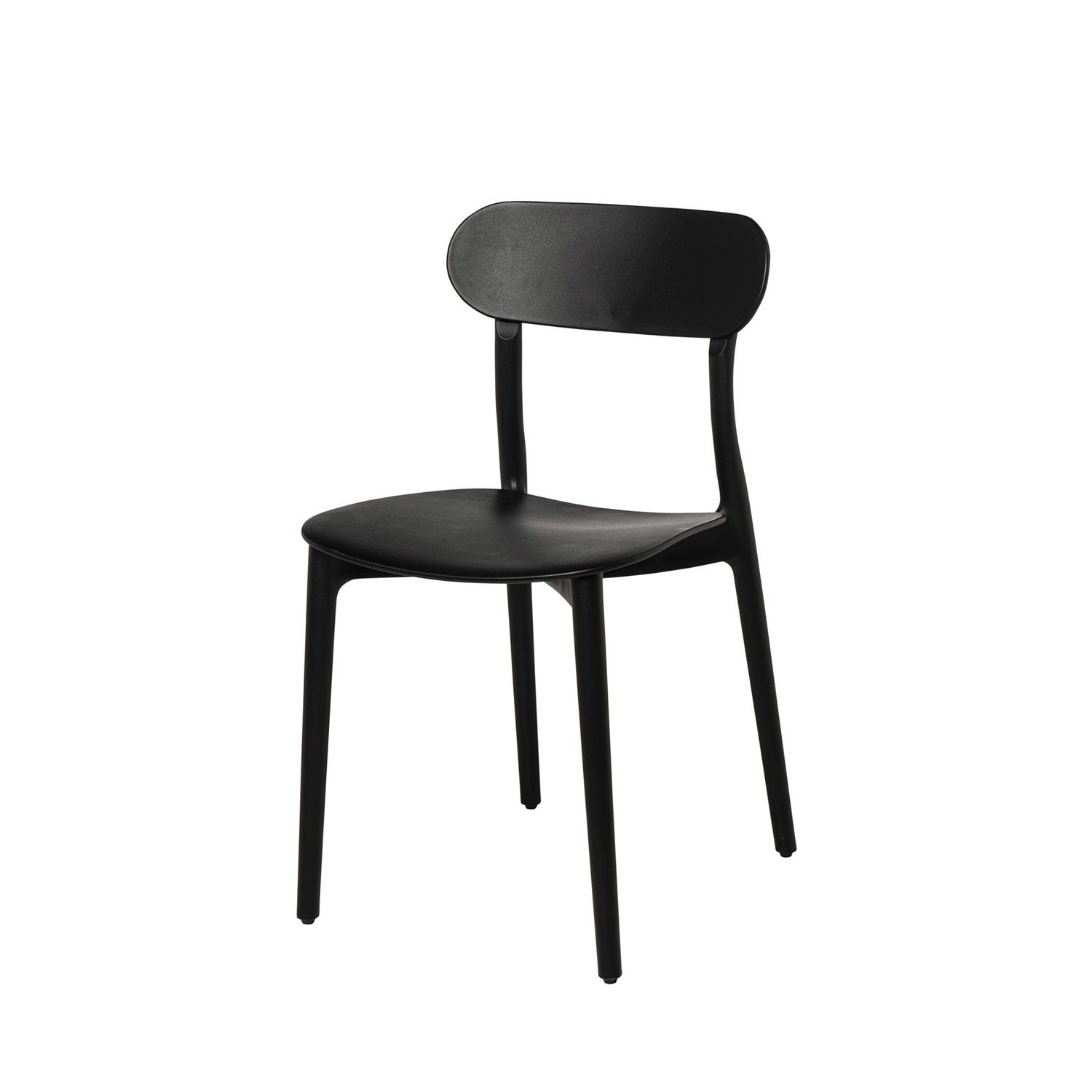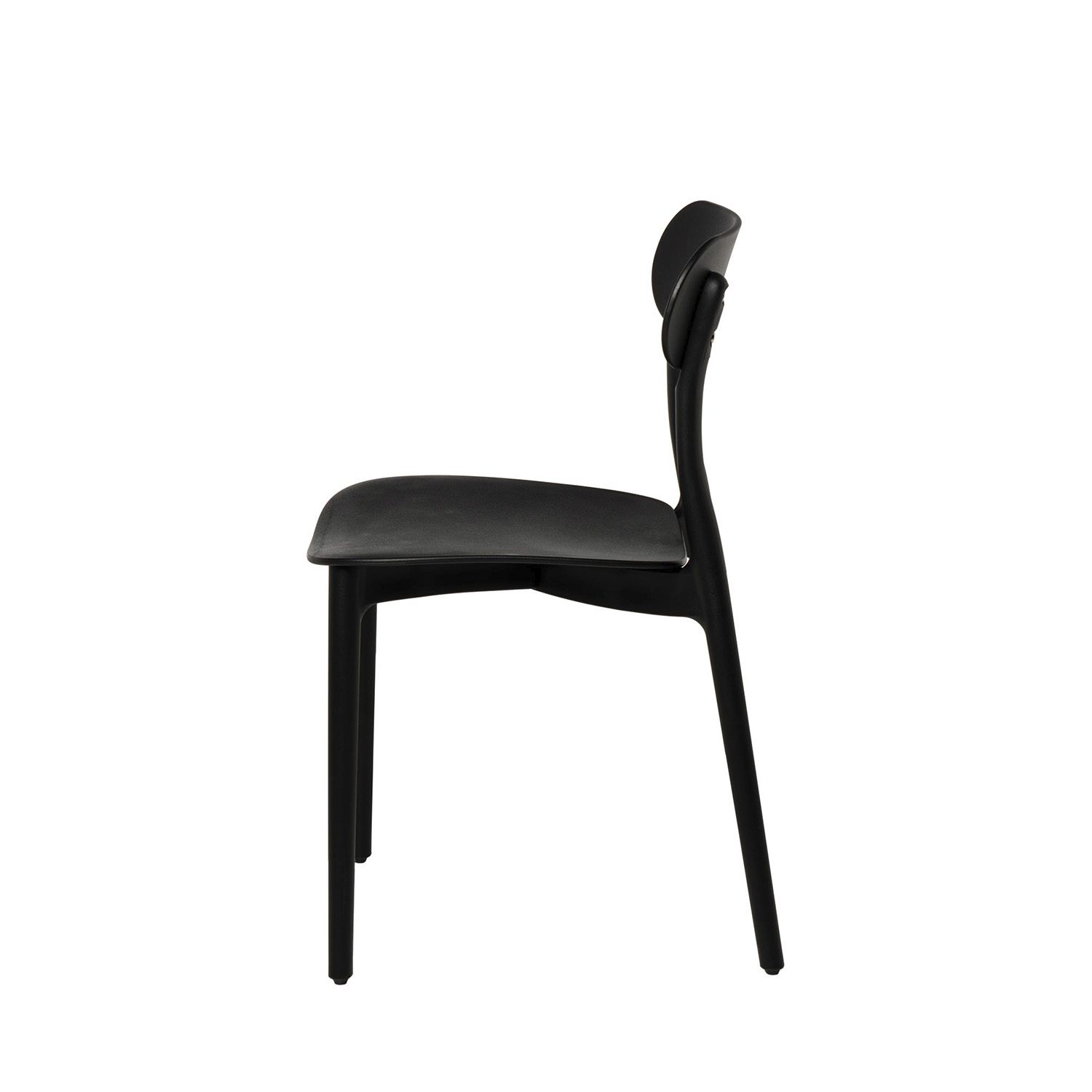 Su respaldo de forma ovalada brinda soporte ergonómico, y el asiento ligeramente cóncavo, proporciona mayor comodidad.