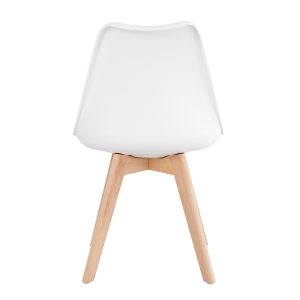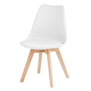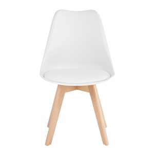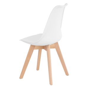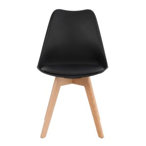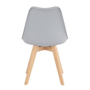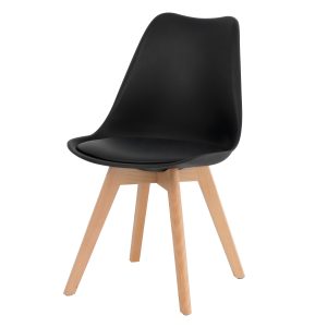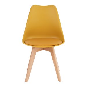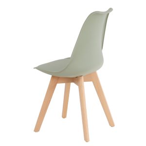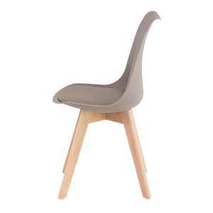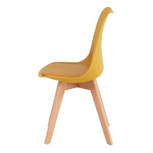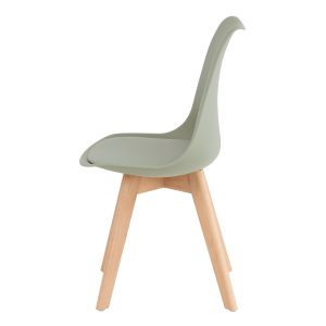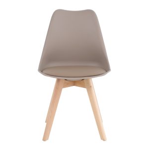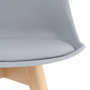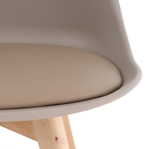 - La silla KARINA destaca por su diseño con patas de madera y estructura en polipropileno con asiento PU acolchado.