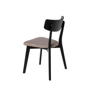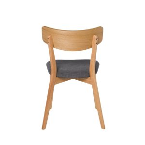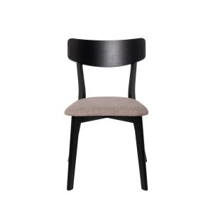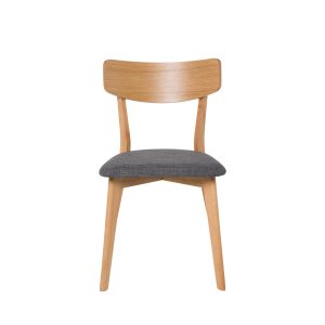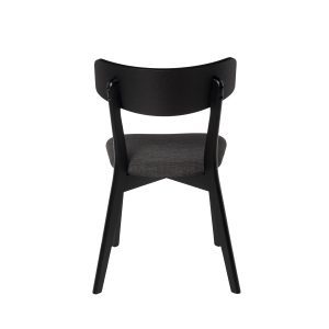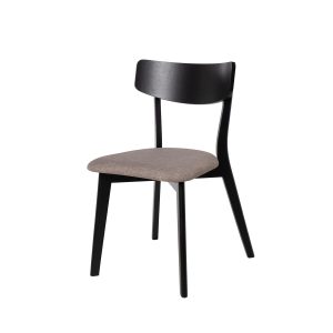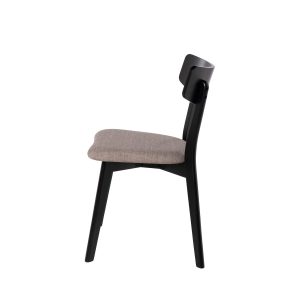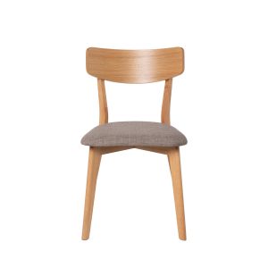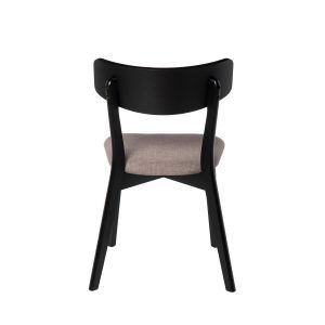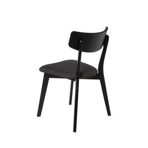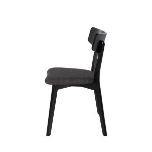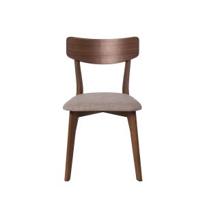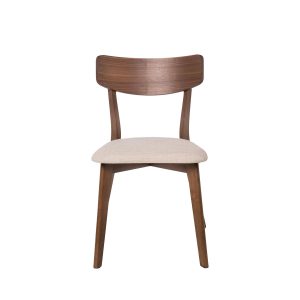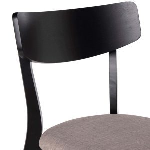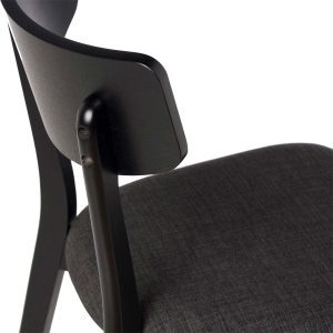 - Su estructura está hecha de chapa de nogal, roble o negro, lo que le confiere un aspecto elegante y actual. El asiento, tapizado en tela de color gris claro, gris oscuro, beige o negro (100% poliéster), añade un contraste sofisticado y contemporáneo.