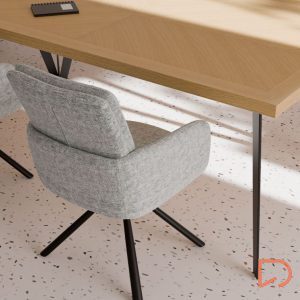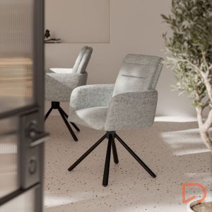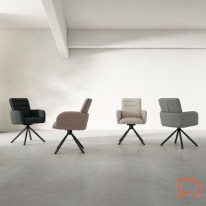 - La silla LINDA presenta una estructura de líneas rectas con respaldo y reposabrazos altos, proporcionando un mayor confort gracias a su completo acolchado.