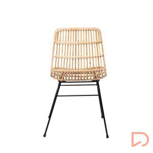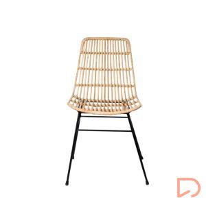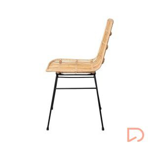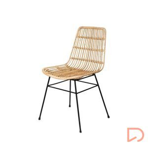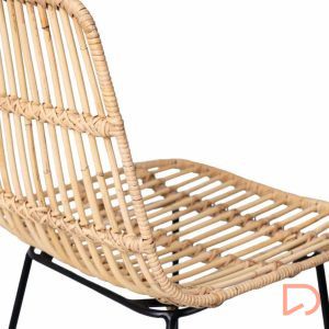 - La silla LIONA fusiona la belleza de los materiales naturales con un diseño moderno y versátil. Su asiento de ratán trenzado, en un tono cálido y orgánico, aporta textura y ligereza visual, mientras que sus patas de hierro negro brindan un contraste elegante y una base firme y estable.