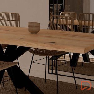 - Gracias a la combinación de su color natural con el negro, se adapta sin esfuerzo a distintos entornos, desde comedores hasta zonas de trabajo o rincones acogedores en el hogar.