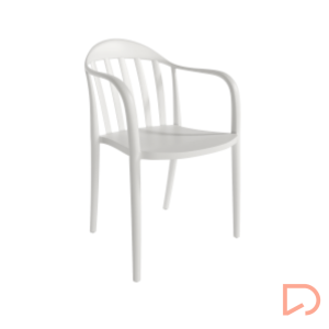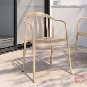 - Silla de polipropileno apilable apta para exteriores, disponible en varios acabados y tonos.