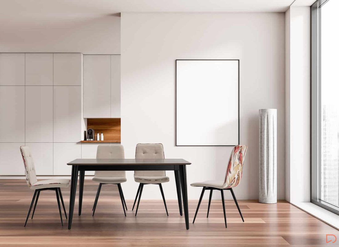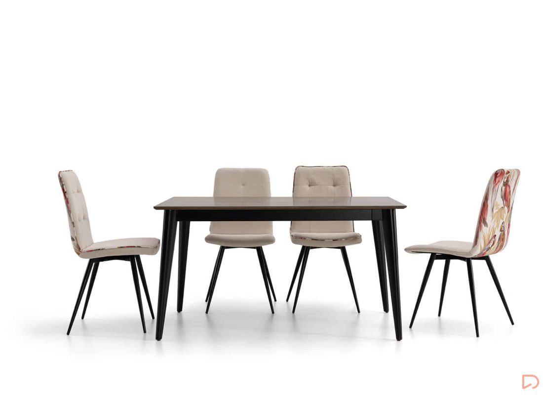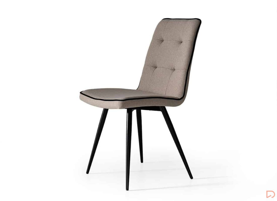 - Las patas metálicas combina funcionalidad y diseño contemporáneo. Su tapizado proporciona un contraste agradable con el esquema de color neutro, mientras que el detallado acolchado del respaldo añade un elemento de sofisticación y confort. Las patas metálicas negras añaden un toque de elegancia y solidez, creando una base firme que complementa el diseño minimalista de la silla.