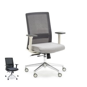 - Brazos regulables en altura, profundidad y giro. (3D) con reposabrazos de goma blanda en la versión de carcasas blancas y Brazos regulables en altura (1D) en la versión de carcasas negras.