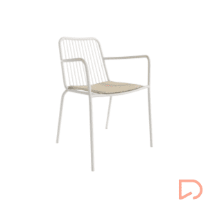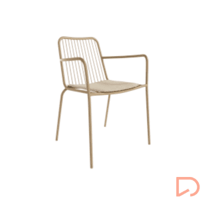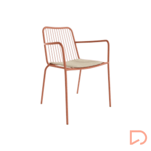 - Silla de polipropileno apilable apta para exteriores, con cojín incluido disponible en varios acabados y tonos.