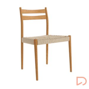 - Ofrece acabados en tono roble y el asiento de cuerda natural.