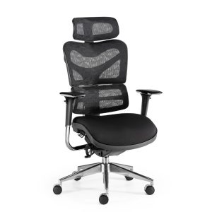 - Asiento: El asiento tiene un diseño ergonómico con forma convexa para favorecer la circulación sanguínea en las piernas. Está fabricado con un asiento interior de polipropileno reforzado recubierto con espuma de poliuretano de alta densidad y resistencia inyectado en molde. Tapizada en tela flex.